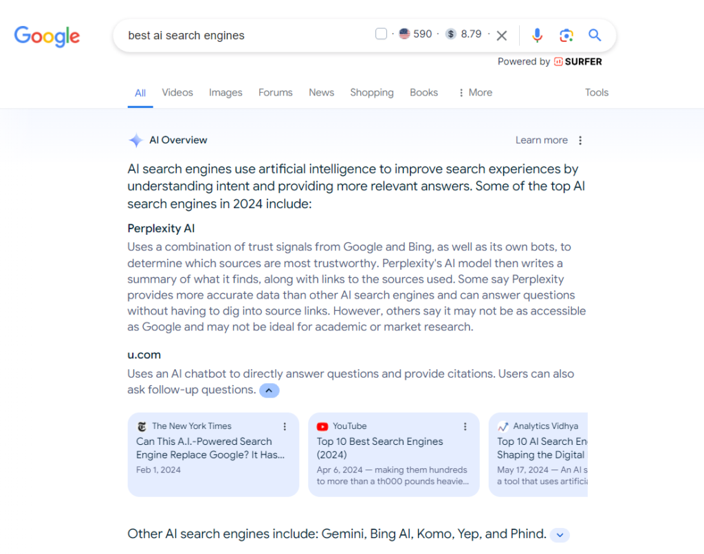 - In-depth Answers: AI Search Engines can go beyond simple links and provide comprehensive summaries of the information you seek, saving you the need to visit multiple websites.